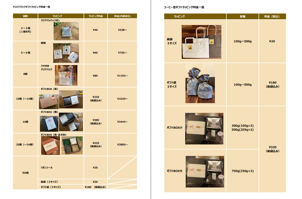 コーヒー豆、ドリップパックコーヒーのギフトのご注文は、いつでも承っています。